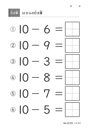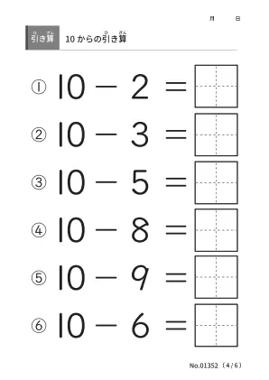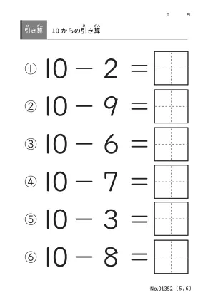 おすすめポイント集中的に10から引く引き算に取り組むことによって繰り下がりのない、繰り下がりのある引き算の理解に役立てることができます。