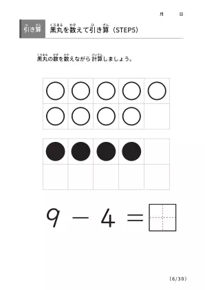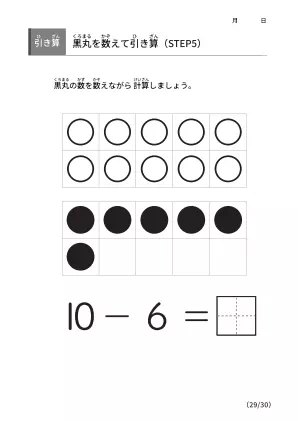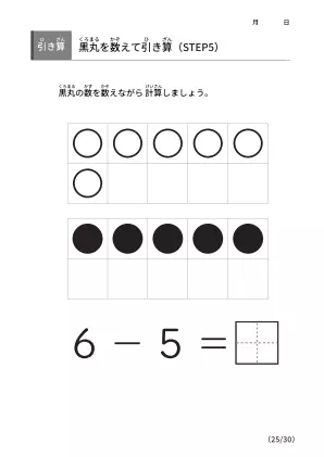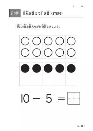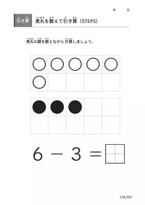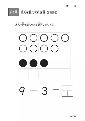 数字間の差を理解するための手法「黒丸を数えながら引き算 【STEP5】」無料ダウンロード