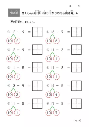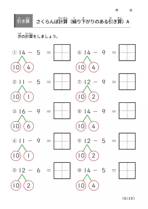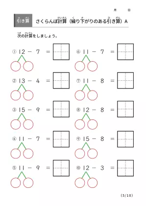シンプルな計算過程が魅力「さくらんぼ計算の引き算A」無料ダウンロード