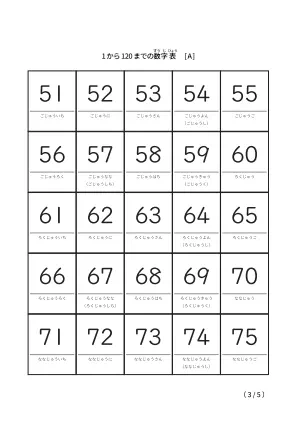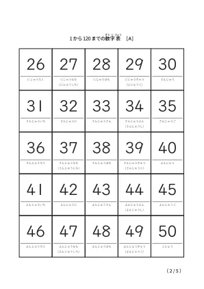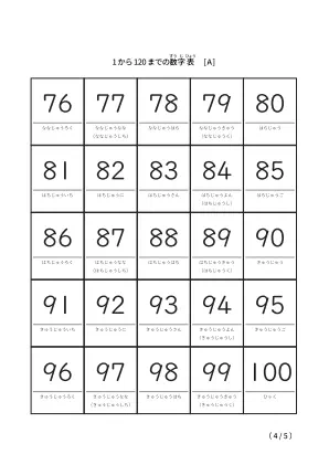 ひらがな表記も併記「1から120までのシンプル数字表」無料ダウンロード