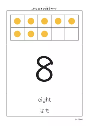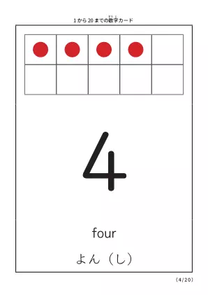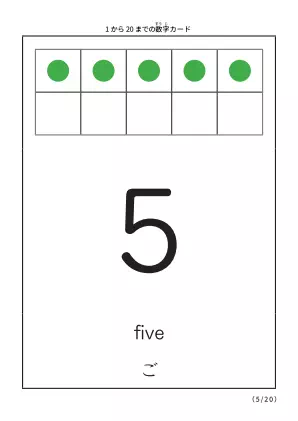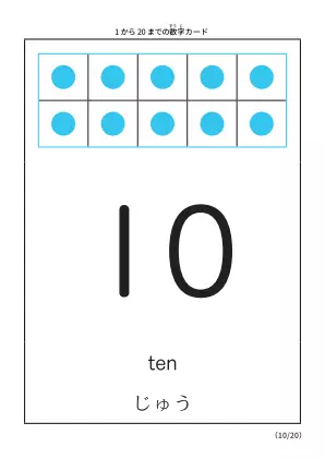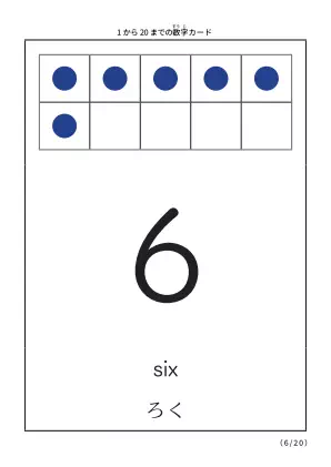 A4サイズの数字表、カードです。数字とドットを目で見て認識し楽しく数字学習ができるPDFファイルになっています。冊子タイプのカードもあります。