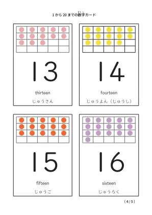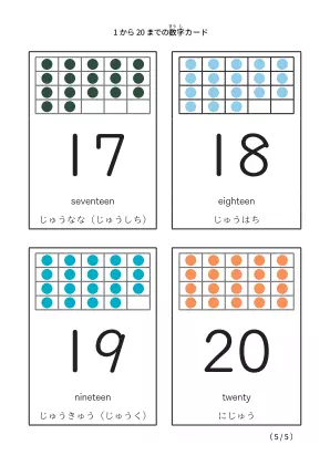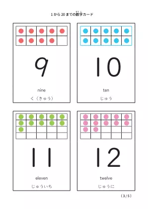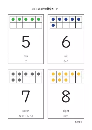 数字とドットを目で見て認識し楽しく数字学習ができるPDFファイル。印刷してフラッシュカードのようにも使えるのが魅力