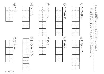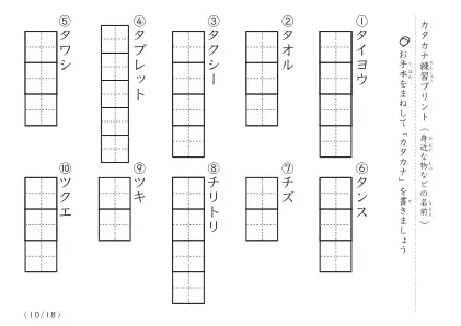 詳しくは「注意事項と免責事項」に記載していますが、 このプリント「カタカナ視写プリント(身近)A」は、「注意事項と免責事項」の範囲内であれば、ご自由に使用することができます。
