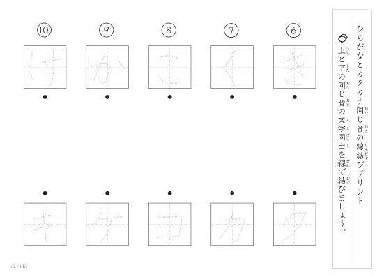 「ひらがなとカタカナ点結び問題」ダウンロード