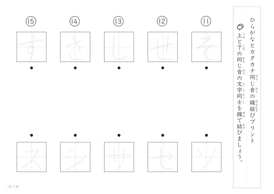 プリント名 | ひらがなとカタカナ点結び問題 |