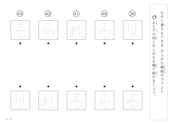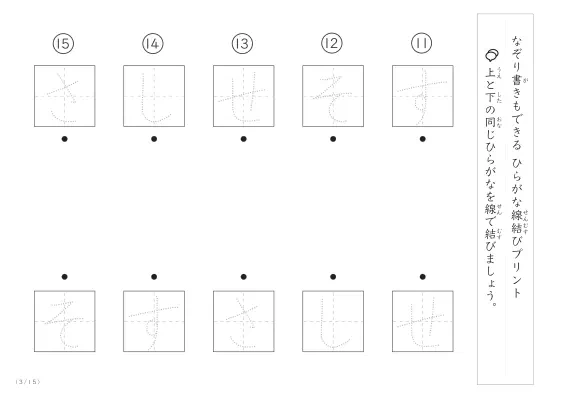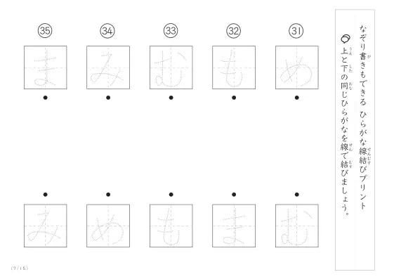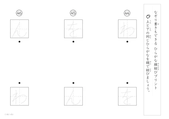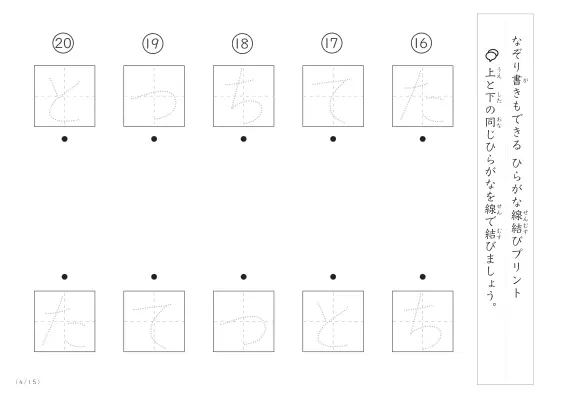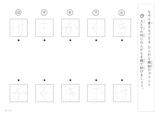 同じひらがなを線でつなぐ「ひらがな点結び問題」無料ダウンロード
