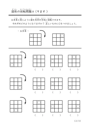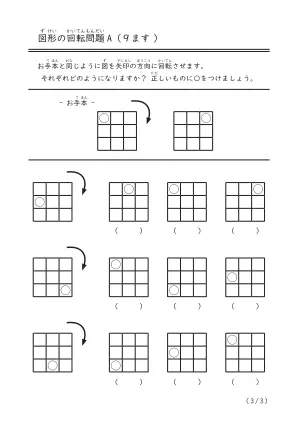 ます目数9の図をまわす「図形の回転問題(9ます)A」無料ダウンロード